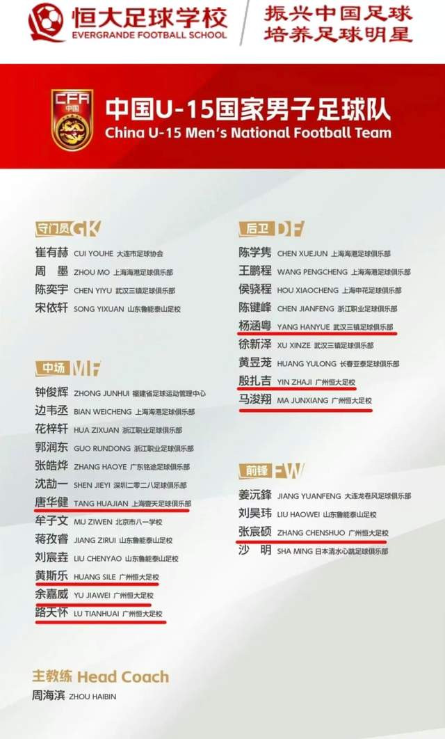 第一个,今天,周海滨执教的U15国少队公布30人大名单,球队将出战在意大利举行的国家之杯,先后挑战意大利、奥地利等欧洲强队,而恒大足校培养的8名球员入选新一期U15国少队,目前还在恒大的还有6人,可以说,当年许家印创建的恒大足校还在发挥重大作用,与许家印认罪形成鲜明对比。